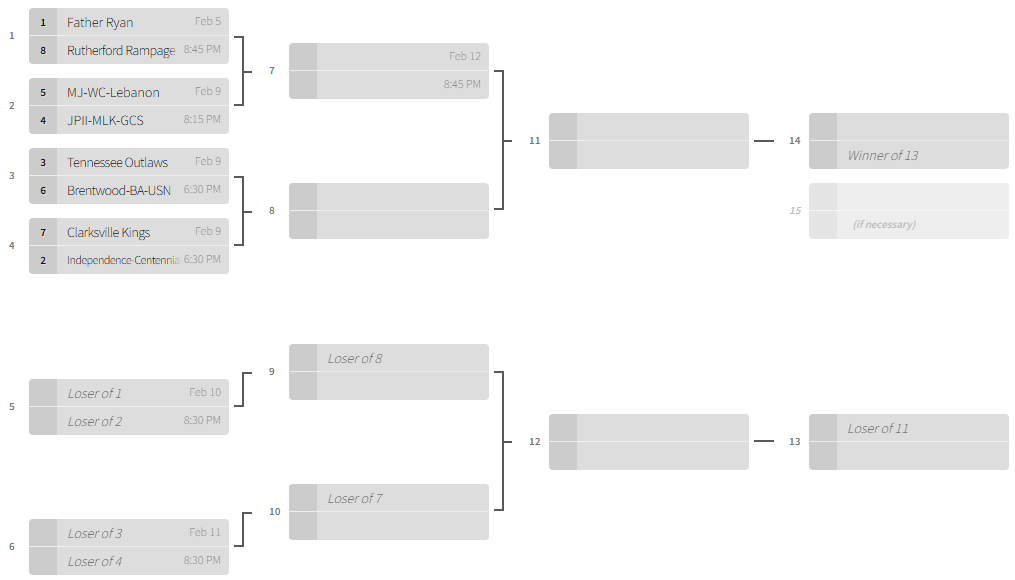 Independence-Centennial: Next Monday vs. 7 seed Clarksville Kings in a Henry Hine Cup first round game @ 6:30 PM @ Centennial B