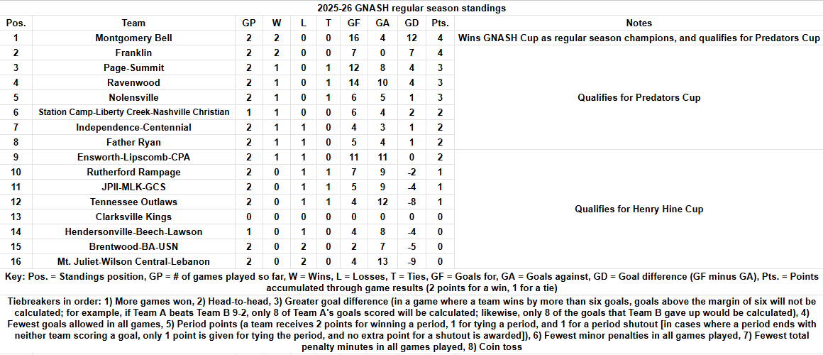Both of these teams lost a game by the final score of 8-4 last week: Hendersonville to Ravenwood, and Mt. Juliet to Ensworth-Lipscomb-CPA. In both games, they kept it close, only for the winners to run away late. This could be a close game. I’d tip the needle in terms of depth to Hendersonville, but I’d say the goaltending is about even. Both defenses will need to be shored up, and keep the likes of Jordan Antar and Gideon Drobnick at bay. This feels like a must-win for Mt. Juliet, because this is already their third game of the season, and their next game is against Ravenwood, so, if they want to pick up some points towards a high Hine Cup seed (I can’t see this team getting into the Predators Cup), they need to win this one. Anthony Giampaolo is serving the second of his yet-to-be-determined number of games suspension, as the GNASH website has still not announced how many games he’ll get for a match penalty for kicking an opposing player in the Franklin game last week.